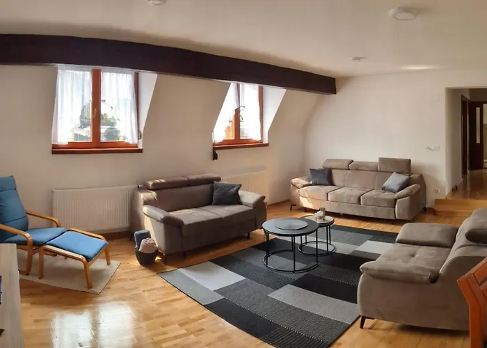 The apartment features a fully equipped kitchen fitted with an electric kettle, a fridge, and an oven. Vojnicko Polje bus stop lies within sight of the 80 m^2 apartment.